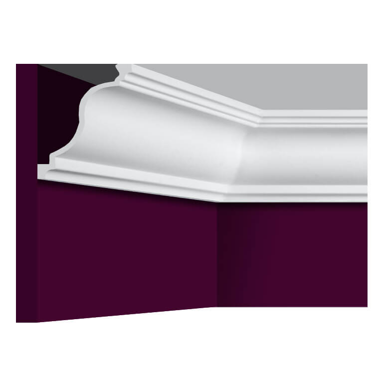 Moldura lisa de techo de poliestireno de muy alta densidad, resistente a los golpes.